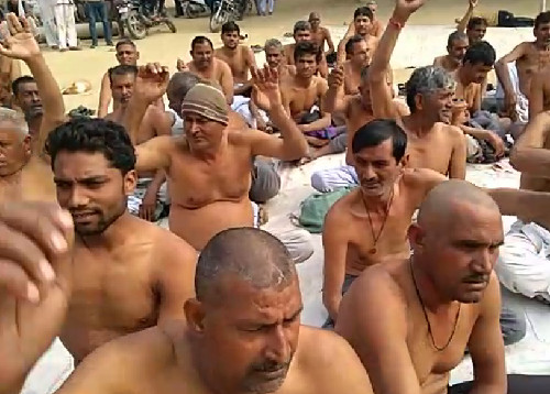 अपनी मांग को लेकर किसान अर्ध नग्न अवस्था में सड़क पर उतर गए।