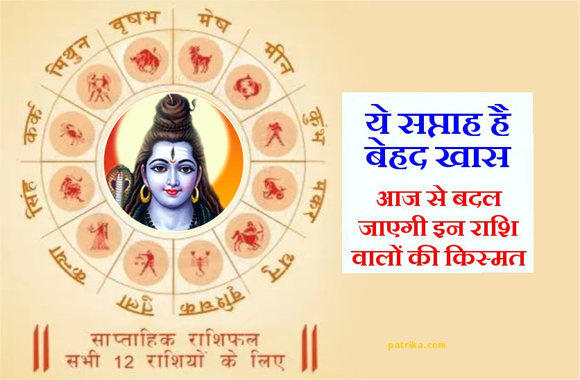 जानें यह सप्ताह सोमवार से लेकर रविवार तक, मेष राशि से लेकर मीन राशि के जातकों का साप्ताहिक भाग्य राशिफल। इस सप्ताह कई राशि के जातकों की खुलने वाली है किस्मत, बन सकते हैं करोड़पति। इस बीच जरूर करें शिवजी का ऐसे पूजन। सभी को मिलेगी सफलता।