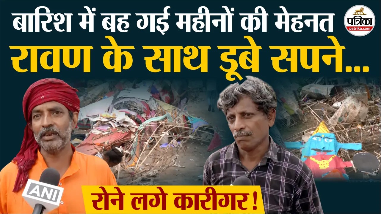 दशहरे की तैयारी में जुटे कारीगरों की उम्मीदें और सपने मंगलवार शाम को हुई झमाझम बारिश में चंद मिनटों में ही ध्वस्त हो गए। मानसरोवर मेट्रो स्टेशन, गुर्जर की थड़ी, सीकर रोड, इमली फाटक के पास और अन्य इलाकों में महीनों की मेहनत से बनाए गए रावण, मेघनाथ और कुंभकर्ण के पुतले पानी में भीगकर (Ravana Effigy Damaged)बर्बाद हो गए। दो महीने की थकान और मेहनत, घर चलाने की उम्मीदें, सब कुछ बारिश की बूंदों में बह गया। दशहरे से पहले यह झटका कारीगरों और उनके परिवारों के लिए गहरी मायूसी लेकर आया।