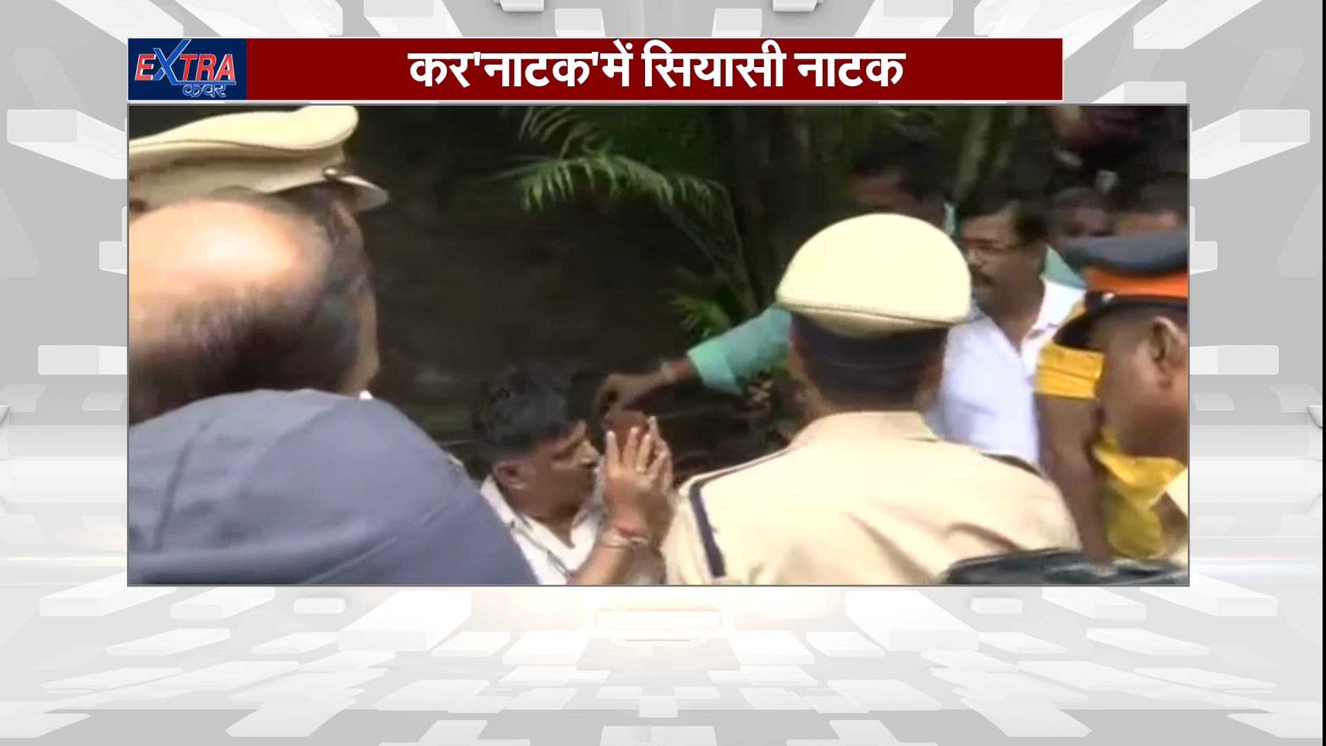 कर्नाटक की सत्ता पर काबिज होने के लिए चल रहा सियासी नाटक बुधवार को पूरे चरम पर रहा। कर्नाटक में अपनी सत्ता को बचाने के लिए कांग्रेस-जेडीएस ने पूरी ताकत झोंक दी है। राज्य के मंत्री डीके शिवकुमार और जेडीएस के विधायक शिवलिंगे गौड़ा बागी विधायकों को मनाने मुंबई के उस होटल में पहुंचे जहां वे ठहरे हुए है। इस पर पुलिस ने उन्हें रोक दिया। उधर बागी विधायकों ने पुलिस को पत्र लिखकर सुरक्षा की गुहार लगाई। इस बीच मुंबई के होटल ने आपात स्थितियों का हवाला देते हुए मंत्री डीके शिवकुमार की बुकिंग रद कर दी। मुंबई पुलिस ने होटल के आस पास धारा-144 लगा दी है। निषेधाज्ञा लागू होने के बावजूद होटल के बाहर बैठने पर पुलिस ने डीके शिवकुमार को हिरासत में ले लिया। उधर बेंगलुरु में वरिष्ठ कांग्रेस नेता गुलाम नबी आजाद को हिरासत में ले लिया। आजाद राज भवन के नजदीक विरोध प्रदर्शन कर रहे थे। कांग्रेस नेता केसी वेणुगोपाल ने कहा है कि कल सुप्रीम कोर्ट में सुनवाई के दौरान कांग्रेस की ओर से अभिषेक मनु सिंघवी पैरवी करेंगे। कांग्रेस आला कमान ने कल गुलाम नबी आजाद और बीके हरिप्रसाद को आनन-फानन में दिल्ली से बेंगलुरु भेजा था। सूत्रों ने बताया कि संप्रग अध्यक्ष सोनिया गांधी ने इन नेताओं से कहा है कि वे कर्नाटक संकट सुलझाएं और राज्य में अपनी सरकार बचाएं। इसके बाद कांग्रेस के वरिष्ठ नेता हरकत में आए
