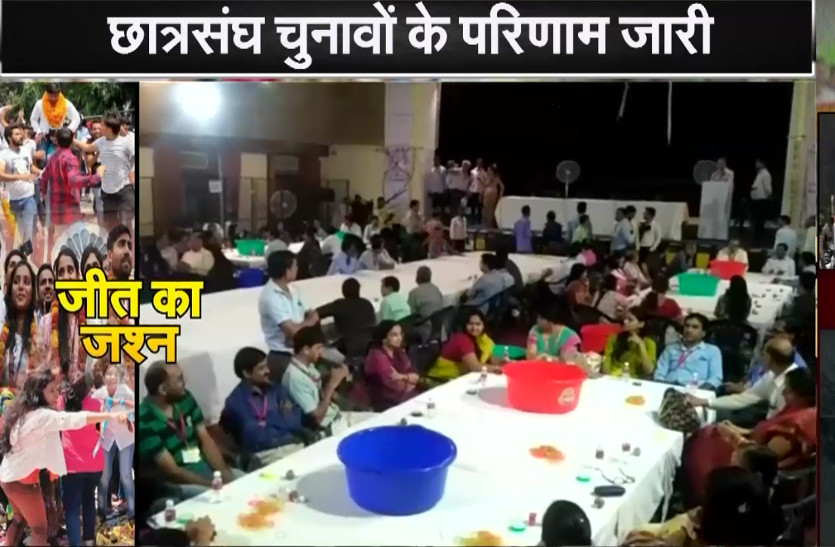 राजस्थान में हुए छात्रसंघ चुनावों के परिणाम मंगलवार को घोषित हो गए हैं। प्रदेशभर के कॉलेजों में छात्रसंघ चुनाव की मतगणना का सिलसिला सुबह 10 बजे से शुरू हो गया था जो दोपहर तक चला। वहीं करीब 1 बजे बाद से छात्रसंघो के नतीजे आमा शुरू हुए। राजस्थान में सबसे बड़ा चुनाव राज. विश्वविद्यालय का रहा जिसमे लगातार इस साल भी बागी ने ही बाजी मारी। विश्वविश्वविद्यालय से अध्यक्ष पद पर निर्दलीय विनोद जाखड़ ने जीत हासिल की। वहीं अजमेर के महर्षि दयानंद सरस्वती विश्वविद्यालय में ABVP का पलड़ा भारी रहा। इसी के साथ कोटा विश्वविद्यालय में सभी पदों पर निर्दलीय उम्मीदवारों ने जीत हासिल की।