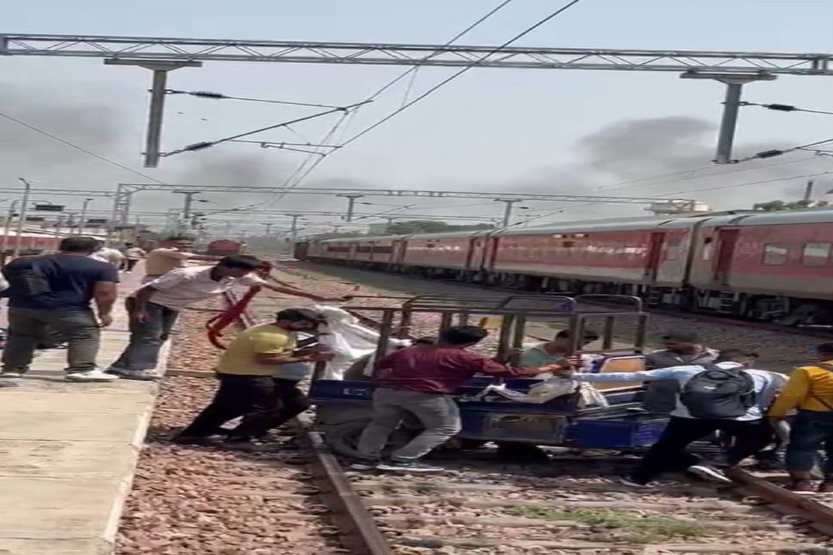 – ट्रेन देरी से आ रही थी, इसी बीच लोगों ने ट्रेक से हटाया ई-रिक्शा