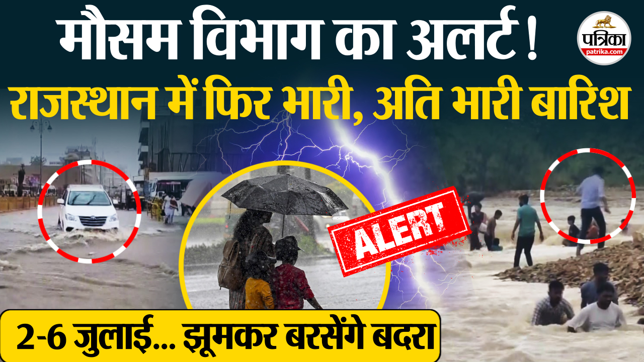 Weather Update मौसम विभाग IMD ने राजस्थान rajasthan की राजधानी जयपुर सहित कुछ अन्य जिलों के लिए भारी और अति भारी बारिश का अलर्ट जारी किया है। मौसम विज्ञान केंद्र जयपुर के अनुसार जयपुर, कोटा, भरतपुर और उदयपुर में 2 से 6 जुलाई के बीच कहीं कहीं भारी और कहीं कहीं अति भारी वर्षा Rainfall होने की प्रवल संभावना है। आईएमडी के अनुसार 2 जुलाई से मानसून एक बार फिर सक्रिय होने जा रहा है। इसके प्रभाव से बारिश की गतिविधियों में बढ़ोत्तरी होने की संभावना बनी हुई है। बीते 24 घंटों में राजस्थान में सबसे अधिक वर्षा जैसलमेर में रिकॉर्ड की गई। यहां 68.8 एमएम बारिश हुई है। इसके अलावा जोधपुर सहित कुछ अन्य जिलों में भी मेघ जमकर बरसे। लेकिन राजधानी जयपुर सहित प्रदेश के कई जिलों में मानसून की सक्रियता में कुछ कमी महसूस की गई। अब इसमें 2 से 6 जुलाई के बीच फिर से अच्छी प्रोग्रेस के आसार हैं। अब मौसम विभाग ने जोधपुर और बीकानेर में आगामी 3-4 दिन कुछ स्थानों पर हल्की से मध्य बारिश की संभावना जताई है। वहीं पूर्वी राजस्थान के कुछ भागों में 2-3 दिन हल्की से मध्यम बारिश होगी। जयपुर मौसम विज्ञान केंद्र के फोरकास्ट के अनुसार 2 से 5 जुलाई के दौरान बारिश की गतिविधियों में बढोत्तरी देखी जाएगी।