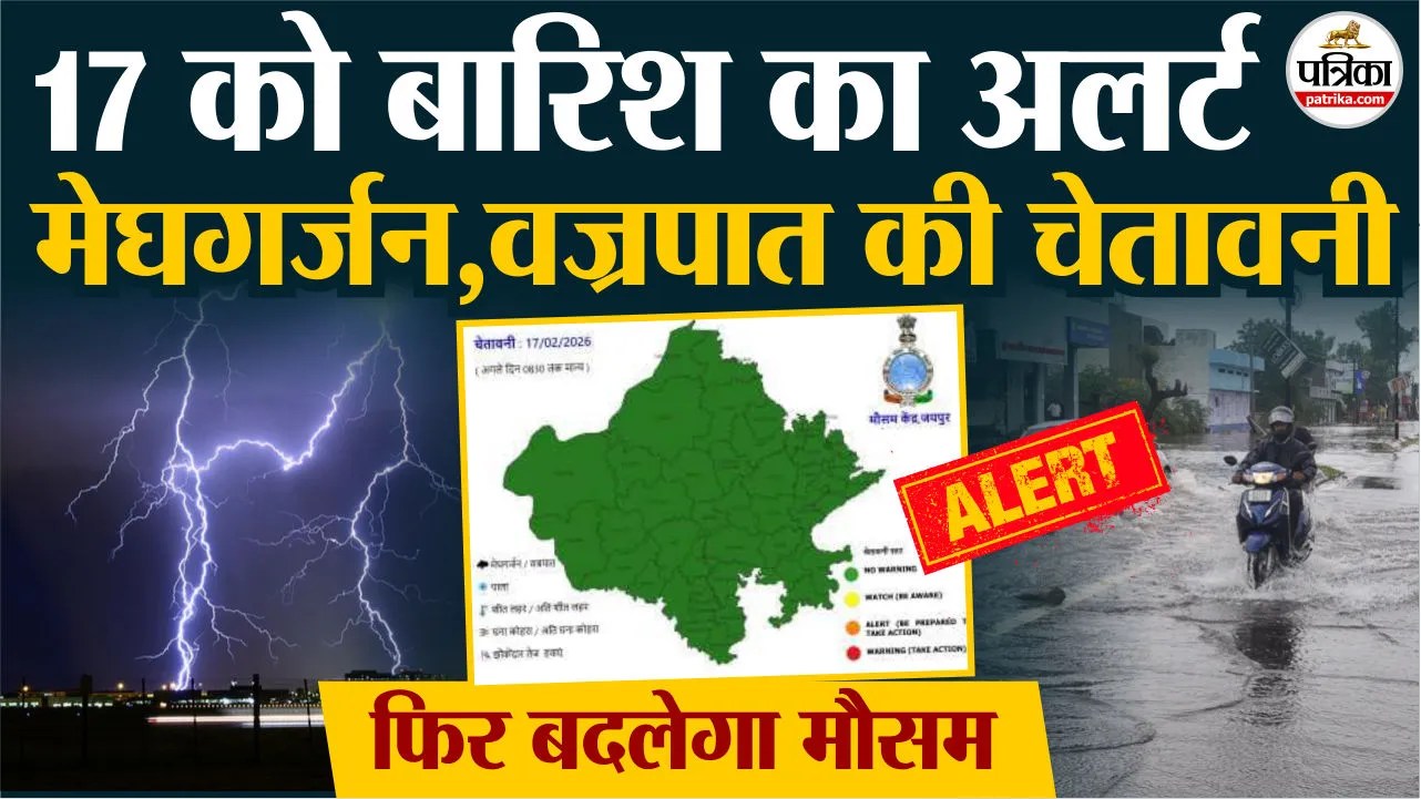 Weather Update Today: मौसम विभाग ने 17 फरवरी को राजस्थान में बारिश, मेघगर्जन, वज्रपात और तेज हवा का अलर्ट जारी किया है। मौसम विभाग के अनुसार पश्चिमी विक्षोभ के प्रभाव से मौसम फिर बदलने जा रहा है। प्रदेश के 34 में से 23 स्थानों का अधिकतम तापमान 30 डिग्री सेल्सियस से अधिक दर्ज किया गया है। प्रदेश में सबसे ज्यादा अधिकतम तापमान बाड़मेर का 35.8 डिग्री सेल्सियस रहा जबकि सबसे कम अधिकतम तापमान माउंटआबू का 24.8 डिग्री सेल्सियस रहा। वहीं 34 स्थानों में से 18 स्थानों का न्यूनतम तापमान 10 डिग्री से 17 डिग्री के बीच दर्ज किया गया। प्रदेश में सबसे कम न्यूनतम तापमान 5.6 पाली का दर्ज किया गया है तो वहीं सबसे अधिक न्यूनतम तापमान फलौदी का 17 डिग्री सेल्सियस दर्ज किया गया है।