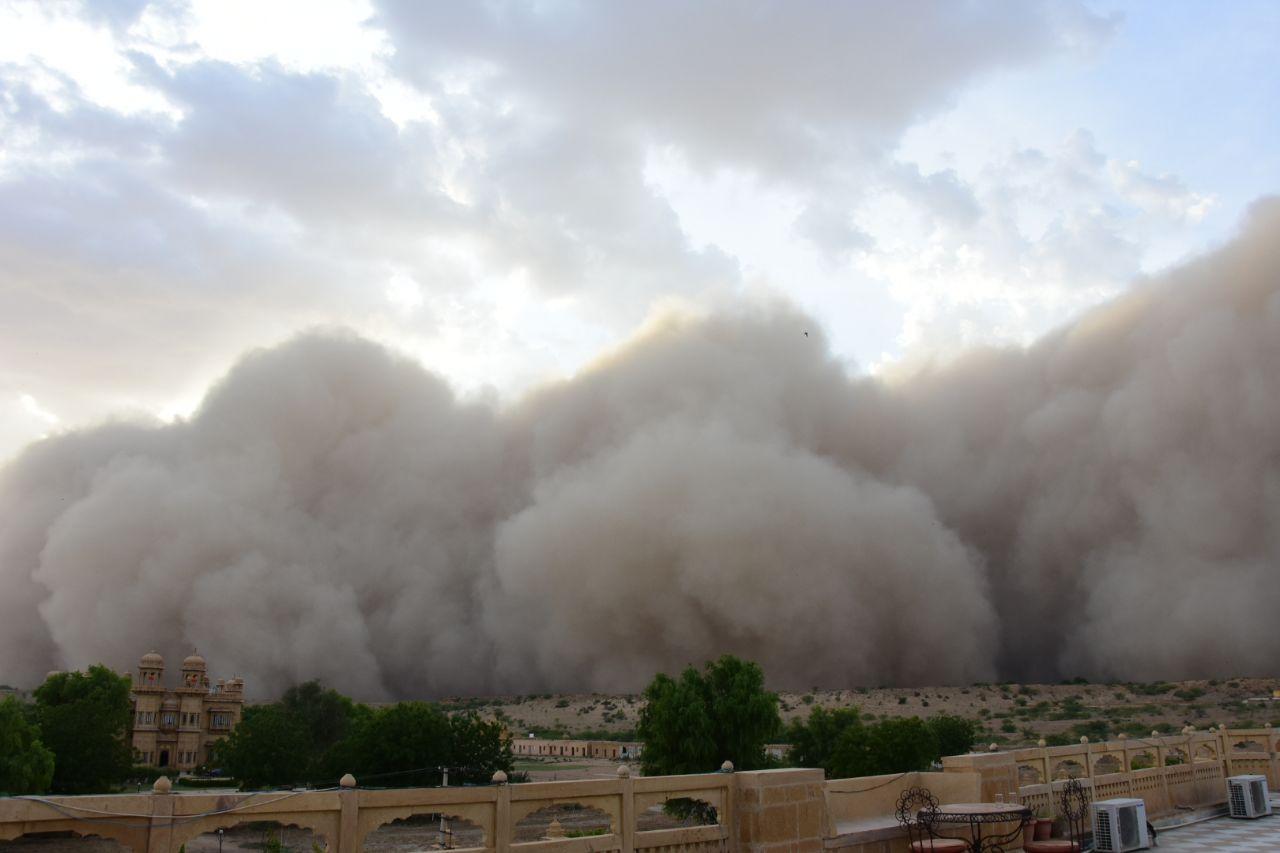 सत्ता संग्राम के बीच बुधवार को रेगिस्तान में रेत का बवंडर उठा। बालोतरा-बाड़मेर-जैसलमेर तक करीब 300 किमी क्षेत्र में शाम करीब 6.45 बजे एक साथ आसमान में रेत का बवंडर उठता दिखाई दिया। काली-पीली आंधी ने आसमान से जमीन तक अंधेरा फैला दिया और पांच-सात फीट की दूरी तक कुछ भी नहीं दिखाई दे रहा था। करीब आधे घंटे तक आसमान से जमीन के बीच गर्द ही गर्द थी। उत्तर दिशा की तरफ से बढ़ा ये बवंडर बड़ी तेजी से पश्चिम में उन होटलों की तरफ बढ़ा, जहां बाड़ेबंदी में गहलोत समर्थक विधायक हैं।