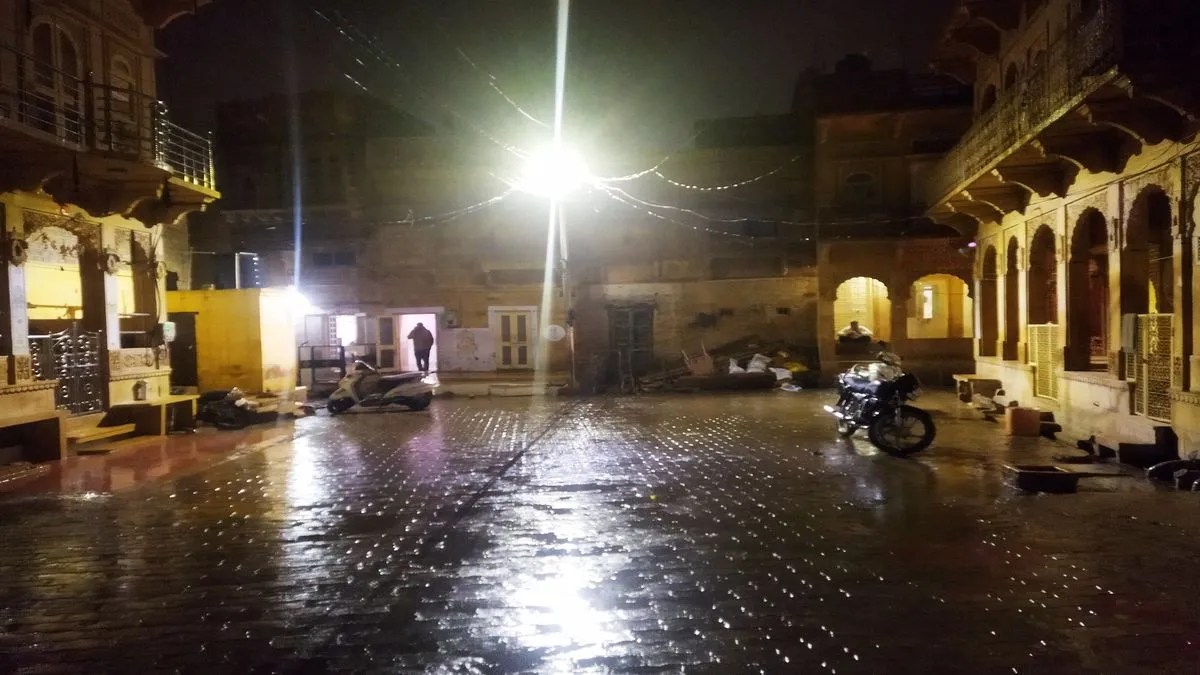 सिमटते सर्दी के मौसम ने एक बार फिर जैसलमेर में पलटवार किया है। गुरुवार को दिन भर तेज गति की हवाओं ने सर्दी का अहसास बढ़ा दिया था, शाम को हवाओं की गति और तेज हो गई और यह करीब 18-20 किमी प्रतिघंटा दर्ज की गई। रात को बूंदाबांदी का दौर शुरू हो गया, तो कुछ ही देर में तेज बारिश के रूप में तब्दील हो गया। एकाएक बरसे बादलों ने ठंडक का असर बढ़ा दिया। इससे पूर्व मौसम विभाग ने दिन का अधिकतम तापमान 27.3 और न्यूनतम 11.7 डिग्री रिकॉर्ड किया। जैसलमेर के अलावा मोहनगढ़ व रामगढ़ क्षेत्र में भी रात को मौसम का मिजाज बदला और बूंदाबांदी का दौर चला।मौसम के पूर्वानुमान के अनुसार शुक्रवार से लेकर आगामी रविवार तक जैसलमेर में पश्चिमी विक्षोभ के चलते कड़ाके की सर्दी का असर रहेगा।