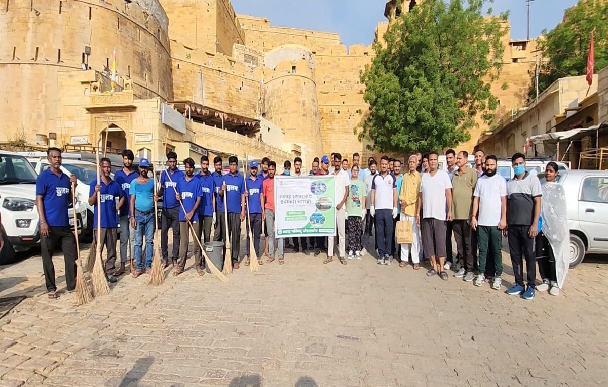 स्वर्णनगरी को स्वच्छ एवं सुन्दर बनाने के उद्देष्य से सभापति हरिवल्लभ कल्ला एवं आयुक्त नगरपरिषद लजपालसिंह के निर्देशानुसार सफाई अपनाओ, बीमारी भगाओ थीम पर स्वर्णनगरी के विश्व विख्यात सोनार दुर्ग पर विशेष सफाई अभियान चलाकर श्रमदान किया गया। श्रमदान कार्यक्रम के अंतर्गत नगरपरिषद की ओर से दशहरा चौक से प्रारंभ करते हुए दुर्ग परकोटे की मोरियों, अखे प्रोल इत्यादि क्षेत्र में विशेष सफाई की गई। इस दौरान वार्ड पार्षद नेहा व्यास, सीमा गोपा व पूर्व पार्षद अरविंद व्यास, विमल गोपा तथा स्वच्छता कार्यक्रम के ब्रांड एम्बेसेडर महेश व्यास ने भी श्रमदान कार्यक्रम में अपना योगदान दिया। कार्यक्रम के दौरान आयुक्त लजपालसिंह ने बताया कि जैसलमेर का विष्व विख्यात सोनार दुर्ग एक विश्व धरोहर है। नगरपरिषद की ओर से इस प्रकार के सफाई अभियान समय-समय आयोजित किए जाते रहे है, लेकिन आमजन की भागीदारी भी नितांत आवश्यक है।