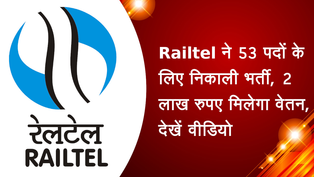 Railtel ने 53 पदों के लिए निकाली भर्ती, 2 लाख रुपए मिलेगा वेतन, देखें वीडियो