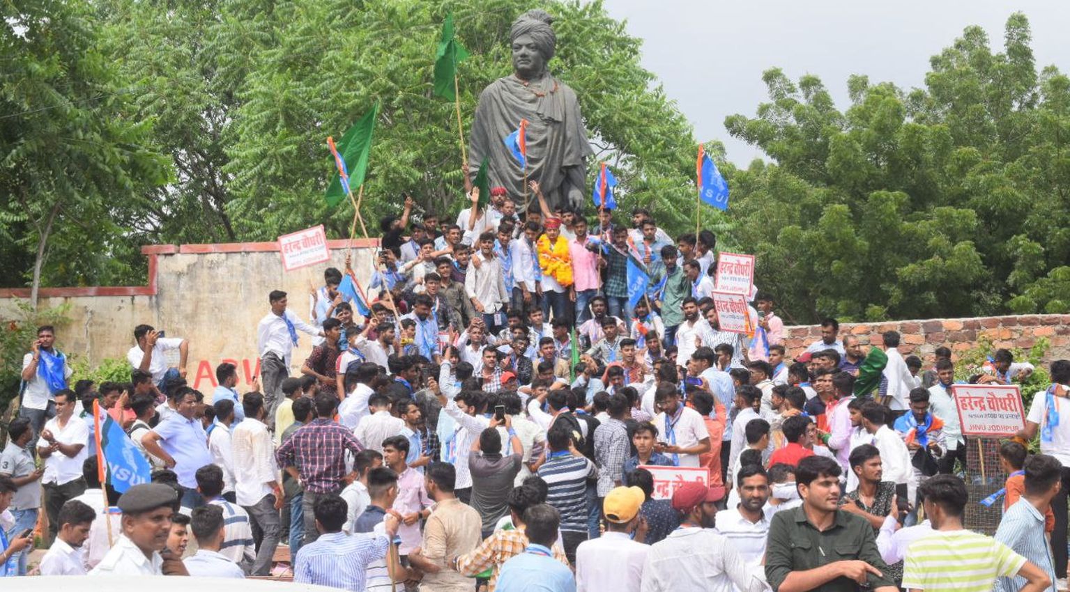 एनएसयूआइ के अध्यक्ष पद के प्रत्याशी हरेंद्र चौधरी ने पाली रोड स्थित तेजा छात्रावास से विवि केंद्रीय कार्यालय तक रैली निकाली। एबीवीपी अध्यक्ष पद प्रत्याशी राजवीर सिंह बांता ने रातानाडा स्थित जाट न्याति नोहरा से और एसएफआइ अध्यक्ष पद प्रत्याशी अरविंद सिंह भाटी ने भाटी चौराहा स्थित हॉस्टल संख्या-3 से रैली निकालकर पहुंचे। रैली में भारी संख्या में समर्थक शामिल हुए। समर्थक अपने प्रत्याशी के समर्थन में नारेबाजी करते हुए पेम्फलेट हवा में उड़ाते हुए चल रहे थे। हालांकि इस बार नामांकन के दौरान कोई अप्रिय घटना नहीं हुई।