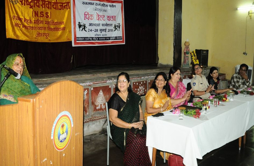 राजस्थान एडवेन्चर स्पोट्र्स कलचरल एंड वेलफेयर सोसायटी के सहयोग से होने वाले प्रशिक्षण में महिला आयोग जोधपुर मंच की वरिष्ठ सदस्य सुमन पोरवाल, नीलम मूंदड़ा, विमला गट्टानी, सहायक पुलिस आयुक्त सीमा हिंगोनिया और सोसायटी के अजीत सिंह ने भाग लिया। महिला आयोग की ओर से जयपुर के बाद अब जोधपुर में पिंक बैल्ट क्लब का प्रशिक्षण शुरू किया गया है।