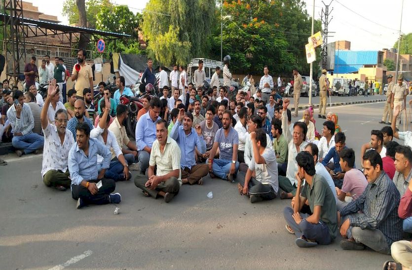 गुस्साए समाज के लोग दोपहर में मोर्चरी के बाहर निकल आए और रास्ता रोक दिया। वे मोर्चरी के बाहर सड़क पर धरना देकर बैठ गए और नारेबाजी करने लगे। पुलिस ने ओलम्पिक तिराहा और रेलवे स्टेशन के सामने से वाहनों को अन्य मार्गों से निकालना शुरू किया। जिससे शाम होते-होते एमजीएच रोड ही नहीं जालोरी गेट, शनिश्चरजी का स्थान, रेलवे स्टेशन रोड, रातानाडा, जेडीए सर्कल तक यातायात व्यवस्था चरमरा गई। जगह-जगह जाम लग गया। वाहन रेंग-रेंग कर चलने लगे। रात साढ़े आठ बजे तक रास्ता रोका हुआ था और पुलिस व प्रशासनिक अधिकारी समझाइश कर रहे थे।