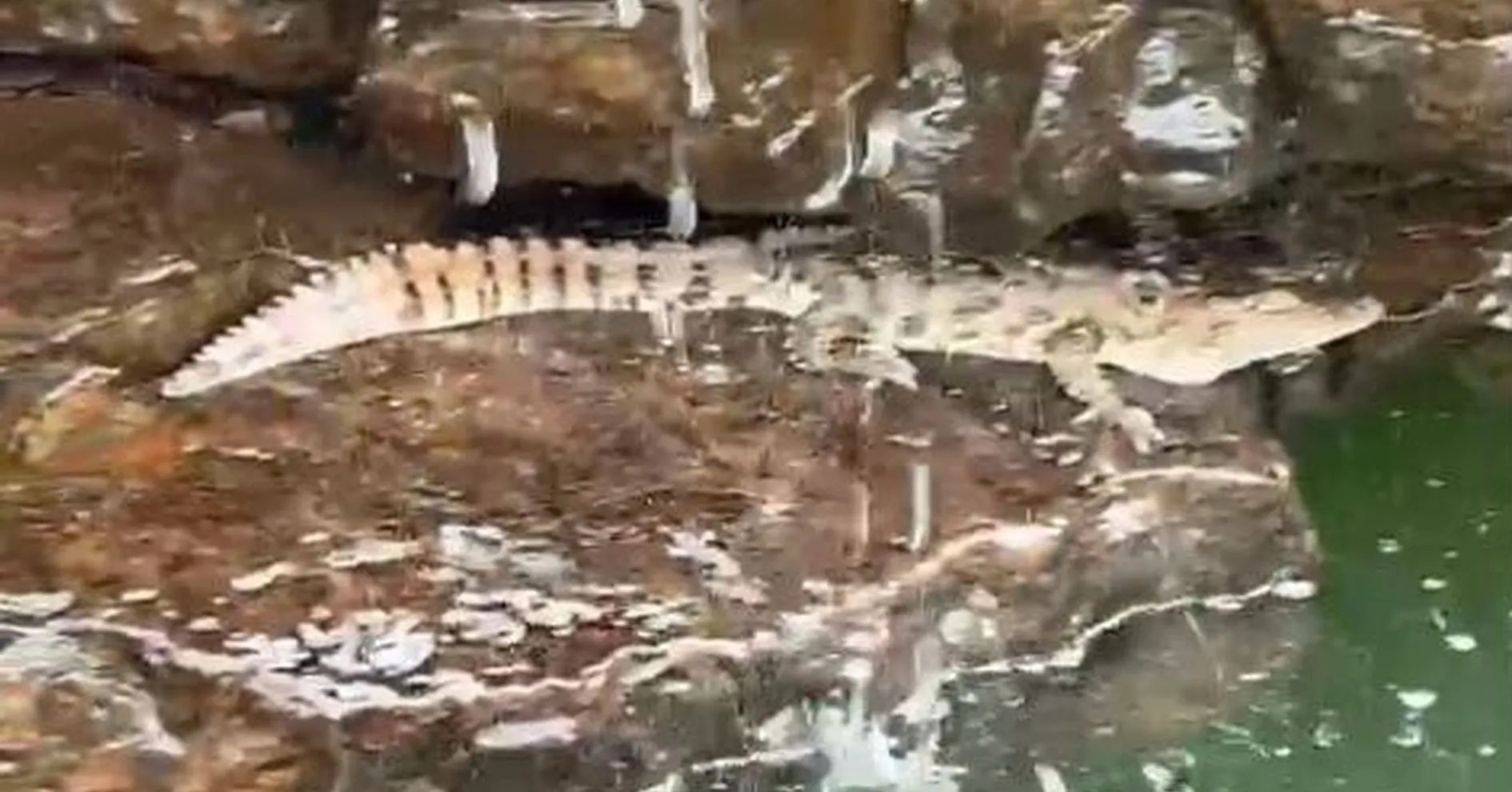 नर्मदा नदी में रविवार को मगरमच्छ दिखाई दिया। नाव पर सवारी घुमाने के दौरान नाविकों ने इसे देखा और वीडियो भी बनाया। चट्टानों से रिसकर पर गिरते पानी के बीच नदी तल की चट्टान पर आराम करते हुए यह मगरमच्छ बच्चा दिख रहा है। नाव पास पहुंचने पर चट्टान से छलांग लगाकर वापस नर्मदा जी में जाते हुए दिखाई दिया।