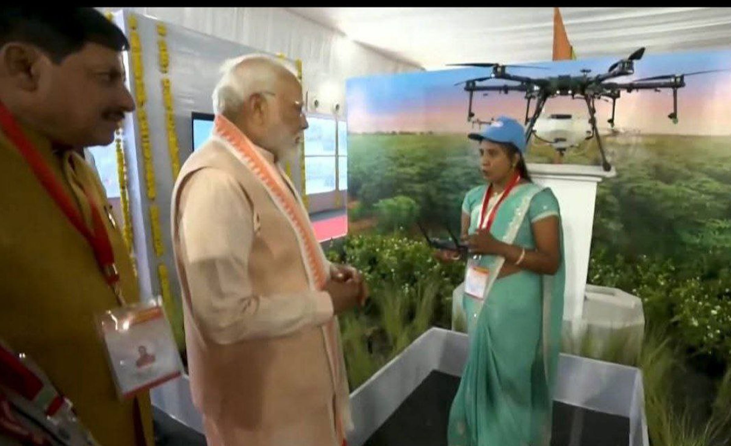 जंबूरी मैदान में महिला सम्मेलन के दौरान पीएम मोदी ने खंडवा की ड्रोन दीदी कविता चौहान संवाद किया। मोदी ने सहज लहजे में ड्रोन दीदी से पूछा कैसा फील हो रहा है। कविता ने जवाब दिया प्राउड फील हो रहा सर। उन्होंने दूसरा प्रश्न पूछा ड्रोन आप स्वयं चलाती हो। कविता बोली जी सर। तीसरे सवाल में उन्होंने आय पूछी। ड्रोन दीदी ने प्रधानमंत्री को बताया कि 2000 एकड़ फसलों में स्प्रे किया। इससे छह लाख रुपए की आय हुई। प्रधानमंत्री ने प्रदर्शनी में खंडवा की बेटी से ढाई मिनट का संवाद किया। ओर उत्साह वर्धन किया। प्रदर्शनी में पांच महिलाएं मौजूद थीं। इसमें हरसूद के रेवापुर निवासी कविता चौहान का नाम नमो दीदी के रूप में शामिल रहीं। कविता प्रदेश की सबसे अधिक कमाई करने वाली ड्रोन दीदी बन गई है।