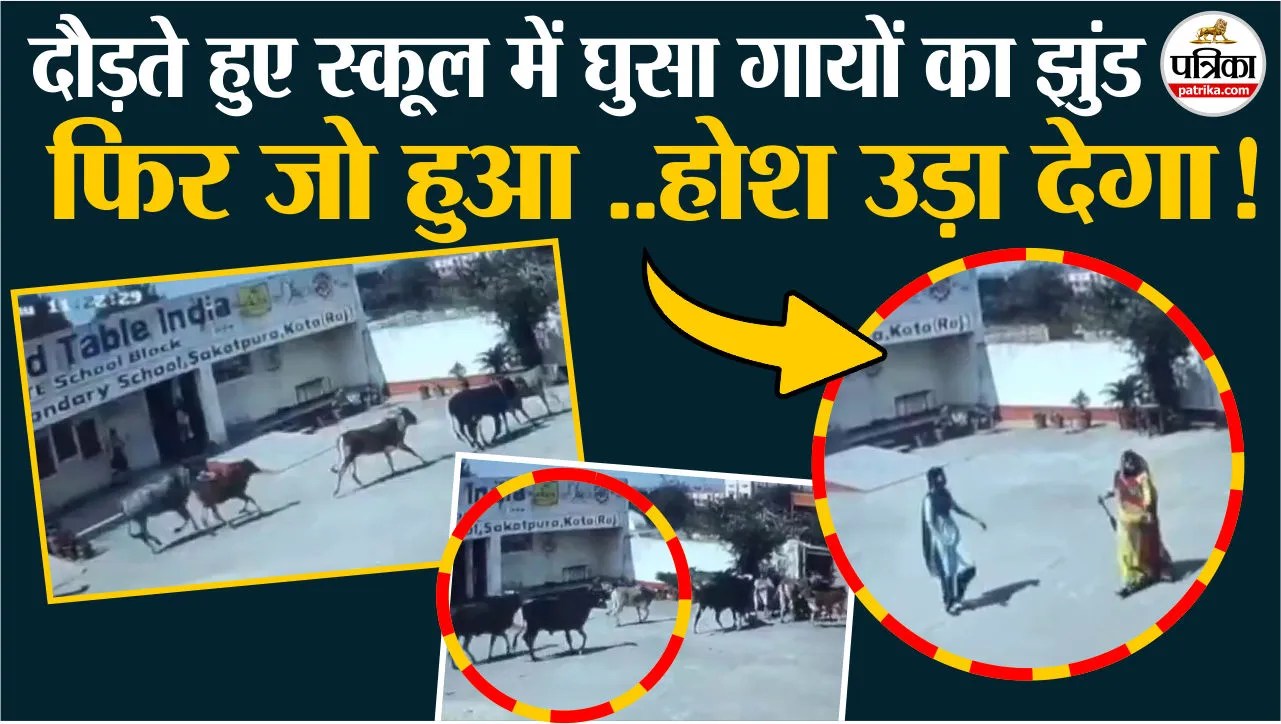 कोटा शहर (Kota)के सकतपुरा स्थित राजकीय बालिका विद्यालय (Saketpura Girls Govt. School)में गुरुवार को उस समय हड़कंप मच गया, जब 20 से अधिक गोवंश बदहवास हालत में दौड़ते हुए स्कूल (Cow Chaos In School)परिसर में घुस गए। घटना के समय स्कूल में नियमित गतिविधियां चल रही थीं..फिर जो हुआ वीडियो में देखिए