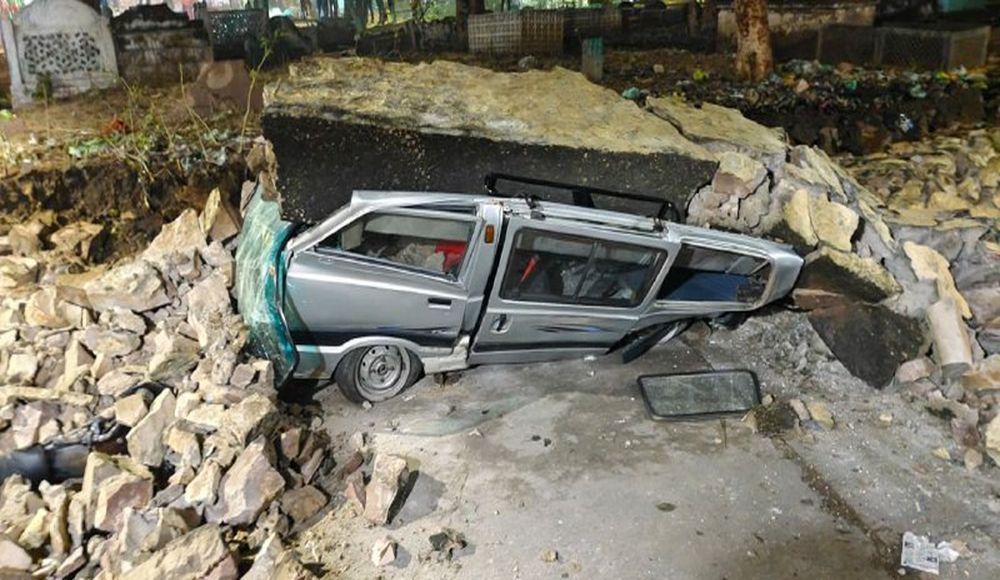 कोटा. नयापुरा थाना क्षेत्र स्थित सब्जीमंडी के पास स्थित कब्रिस्तान की दीवार मंगलवार रात को भरभरा कर गिर गई। गनीमत यह रही कि हादसे में जनहानी नहीं हुई, लेकिन कुछ दुपहिया व चार पहिया वाहन क्षतिग्रस्त हो गए।