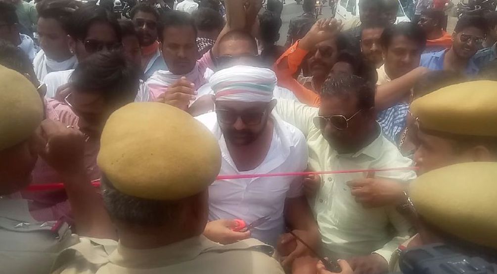 युथ कांग्रेस के कार्यकर्ता प्रदेश महासचिव रवि प्रताप सिंह चंदा के नेतृत्व में कैथूनीपोल में एकत्र हुए। यहां से वाहन रैली के रूप में टिपटा होते हुए समानांतर पुल पर पहुंचे। जहां पर उन्होंने सरकार के खिलाफ प्रदर्शन करते हुए नारेबाजी शुरू कर दी। साथ ही पुल पर जाने की कोशिश की ताकि बेरिकेट हटा आवागमन चालू किया जा सके।