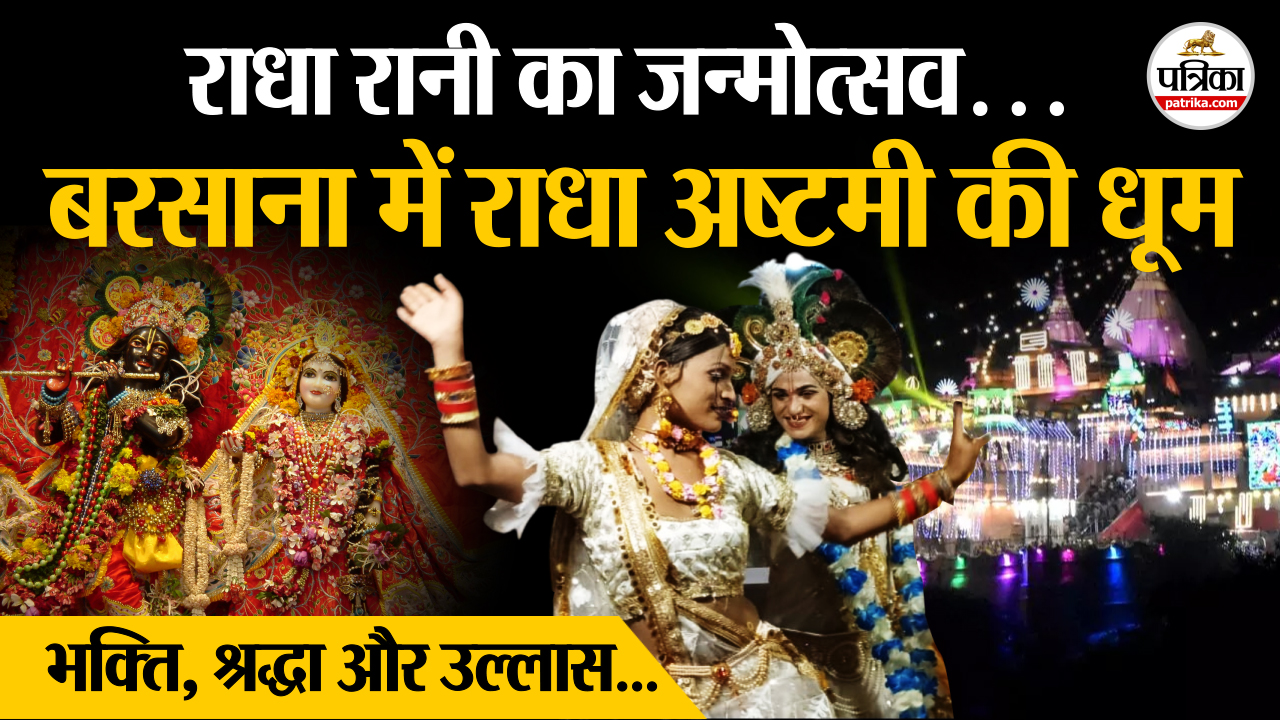 बरसाना में राधा अष्टमी का उत्सव पूरी भक्ति, श्रद्धा और उल्लास के साथ मनाया गया. राधा रानी के जन्मोत्सव के पावन क्षणों के साक्षी बनने के लिए देशभर से हजारों श्रद्धालु बरसाना पहुंचे. तड़के मंगल अभिषेक के साथ कार्यक्रम की शुरुआत हुई, जिसके बाद से राधे-राधे के जयकारों से पूरा क्षेत्र गूंज उठा. सुबह से राधा रानी मंदिर में श्रद्धालुओं की भीड़ उमड़ती रही. राधा रानी मंदिर को फूलों, रंग-बिरंगी लाइटों से भव्य रूप दिया गया. चारों ओर डांस, कीर्तन और भजन के आयोजन हुए, जिससे वातावरण भक्तिमय हो गया. इसके साथ ही प्रशासन की ओर से सुरक्षा व्यवस्था भी चाक-चौबंद रही, जिससे श्रद्धालुओं को किसी प्रकार की असुविधा न हो.