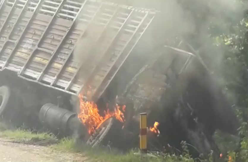 मथुरा। थाना गोवर्धन क्षेत्र के मथुरा गोवर्धन मार्ग पर अडींग गांव के पास एक ट्रक मथुरा से गोवर्धन जा रहा था। ट्रक जैसे से अड़ींग के पास पहुँचा उसमें अचानक आग लग लगी । ट्रक में आग लगते देख आसपास के लोग इकट्ठे हो गए और आग को बुझाने की कोशिश करे लगे, लेकिन आग इतनी तेज थी कि आग पर काबू नहीं पाया जा सका। आग की सूचना पुलिस और दमकल विभाग को दी गई। सूचना मिलते ही मौके पर पहुँची पुलिस और दमकल की गाड़ी ने आग पर काबू पाया। आग लगने से यातायात रुक गया। ट्रक में सवार लोगों ने ट्रक से कूदकर अपनी जान बचाई। लगने का कारण शॉर्ट सर्किट माना जा रहा है। मामले की जानकारी देते हुए सीओ गोवर्धन जगदीश कालीरमन ने बताया की ट्रक में आग लगने की सूचना पर पुलिस मौके पर पहुंची। आग पर काबू पा लिया गया है। कोई जनहानि नहीं हुई है। ट्रक में आग लगने के कारणों का पता लगाया जा रहा है ।