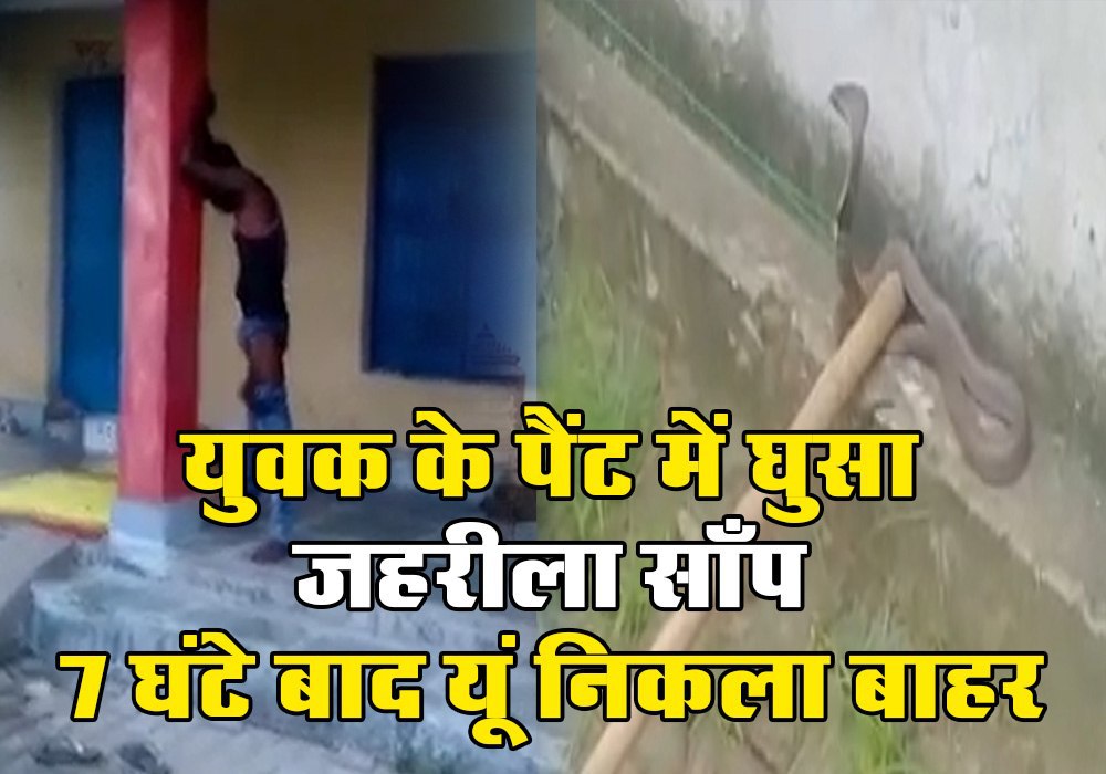 मिर्ज़ापुर. यदि कोई सांप आसपास भी नजर आ जाए तो लोगों की जान सूख जाती है, यहां तो सांप एक युवक की पैंट में घुस गया वह भी जहरीला, तो सोचिए कि उसकी क्या हालत हुई होगी। अपनी जान बचाने के लिए युवक 7 घंटे तक इमारत का खम्भा पकड़ कर व पैंट नीचे कर खड़ा रहा। सुबह होने के बाद सपेरे की मदद से पैंट से सांप को बाहर निकाला गया। राहत की बात यह रही कि इस दौरान सांप ने युवक को काटा नहीं जिससे उसकी जान बच गई।