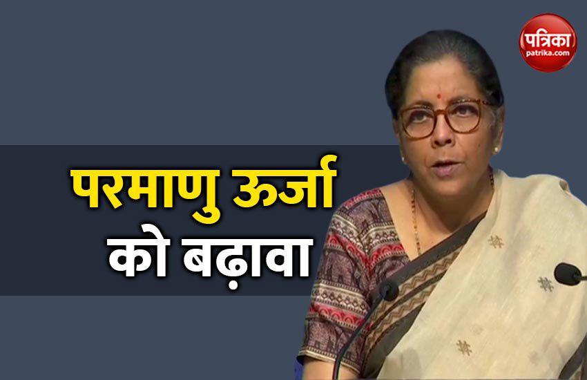 नई दिल्ली। वित्त मंत्री निर्मला सीतारमण (Finance Minister Nirmala Sitharaman ) ने शनिवार को आर्थिक पैकेज (Economic package) की चौथी किस्त का ऐलान किया। सीतारमण ने कहा कि सरकार परमाणु ऊर्जा ( Atomic Energy ) को बढ़ावा देगी। इससे स्टार्टअप्स को नया क्षेत्र मिलेगा।