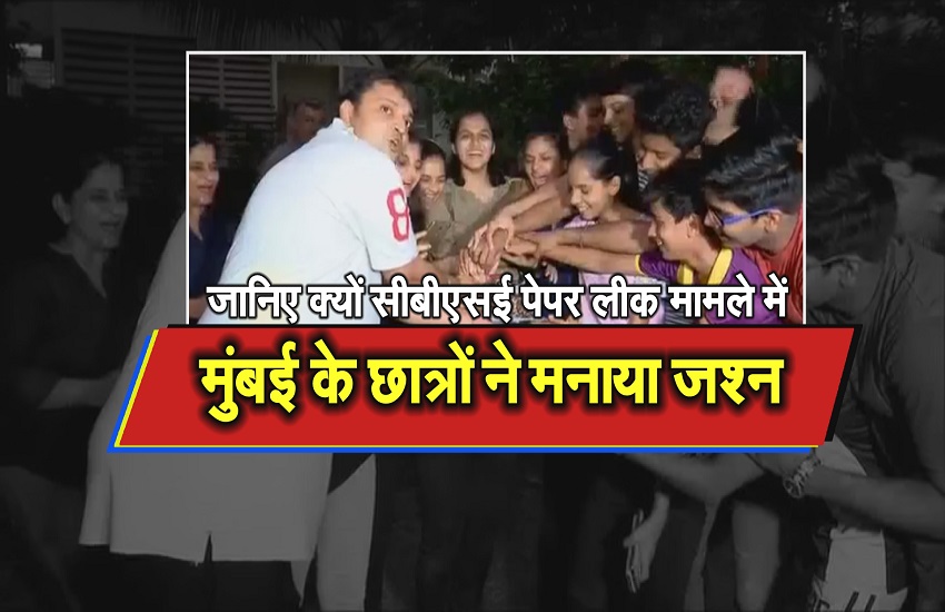 सीबीएसई के प्रश्न-पत्रों के लीक होने और दोबारा परीक्षा कराने के विरोध में राष्ट्रव्यापी प्रदर्शनों के बीच सरकार ने शुक्रवार को कहा कि 12वीं के अर्थशास्त्र की दोबारा परीक्षा देशभर में 25 अप्रैल को आयोजित की जाएगी. जबकि १०वीं के गणित की दोबारा परीक्षा सिर्फ दिल्ली, राष्ट्रीय राजधानी क्षेत्र (एनसीआर) और हरियाणा में जुलाई के महीने में कराई जाएगी. इस खबर के आते ही मानो देशभर के छात्रों की खुशी का ठिकाना ही नहीं रहा…खासतौर पर मुंबई के छात्रों ने तो इस खबर के बाद केक काटकर जश्न भी मनाया। विद्यार्थियों ने एक दूसरे को केक खिलाकर इस फैसले पर अपनी खुशी का इजहार किया.