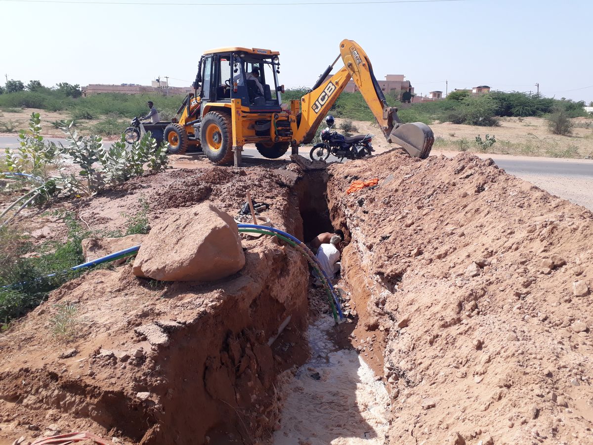 नागौर. शहर के बालवा रोड स्थित आवासन मंडल कॉलोनी में मोबाइल कंपनी जियो के लिए काम कर रहे ठेेकेदार के श्रमिकों ने पानी की पाइप लाइन तोड़ दी, जिससे हजारों लीटर पानी व्यर्थ बह गया। ठेकेदार के श्रमिक आवासन मंडल कॉलोनी के पास लगे मोबाइल टावर के लिए बालवा रोड की तरफ केबल बिछाने का काम करे थे। जेसीबी व कुदाली से खुदाई करते समय छह इंच पाइप लाइन क्षतिग्रस्त हो गई। इससे पानी व्यर्थ बह गया। पानी की लाइन तोडऩे पर आवासन मंडल अधिकारियों ने भी श्रमिकों को सावधानी से काम करने की हिदायत दी। जलदाय विभाग को सूचना देने के बाद कांकरिया स्कूल स्थित पम्प हाउस से पानी की आपूर्ति बंद करने तक पानी बहता रहा। शहरी जल प्रदाय योजना के सहायक अभियंता आरआर शर्मा ने बताया कि लाइन को ठीक करवाकर पेजयलापूर्ति सुचारू करवा दी जाएगी।