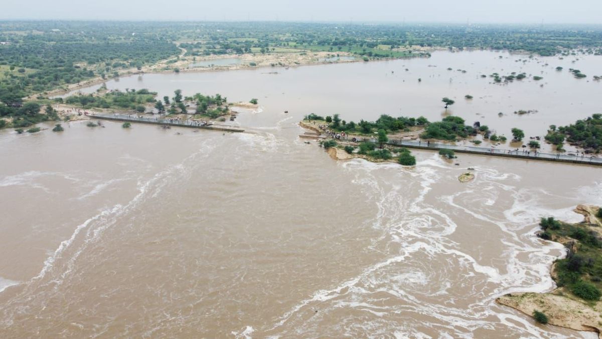 नागौर. अजमेर जिले में हो रही लगातार बारिश का कहर नागौर जिले में दिखने लग गया। यहां आलनियावास के निकट लूनी नदी पर बनी रपट पानी के बहाव के साथ शनिवार को टूट गई। कोडिया मोड़ से एक तरफ रियांबड़ी और दूसरी तरफ टेहला थांवला के बीच बनी रपट के टूटने से आवागमन ठप हो गया। हालांकि नदी में बहाव तेज होने के बाद से ही प्रशासन ने लोगों की आवाजाही बंद कर दी थी। कोई वाहन नहीं निकले इसके लिए रपट के दोनों तरफ खाई खुदवा दी गई थी। रपट पिछले दिनों क्षतिग्रस्त हो गई थी। निरंतर बहाव के चलते शनिवार को दोपहर के समय करीब 50 फीट का हिस्सा पानी के तेज बहाव में बह गया। इधर, नदी में वर्षों बाद आए पानी को देखने के लिए बड़ी संख्या में ग्रामीण की ओर पहुंचे।
