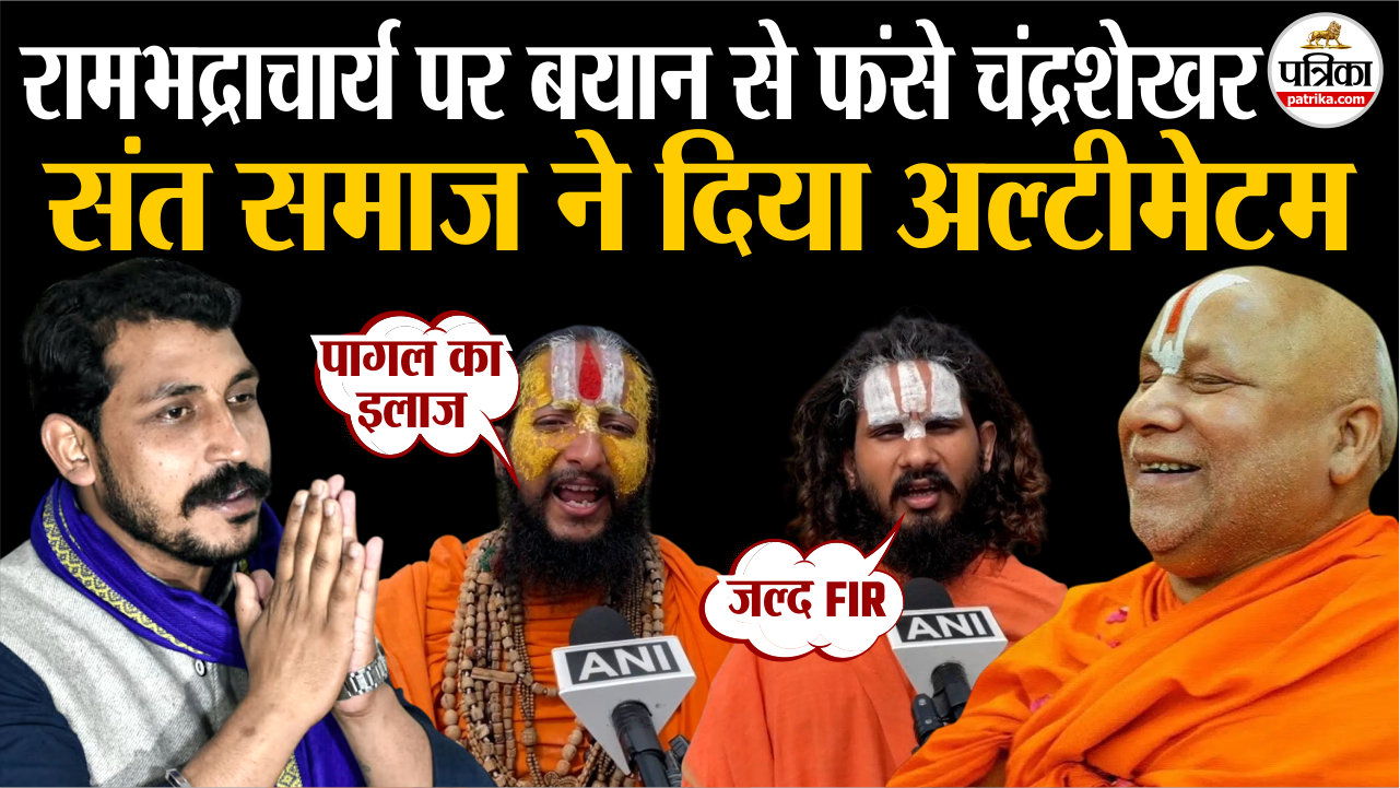 स्वामी रामभद्राचार्य के ‘मिनी पाकिस्तान’ वाले बयान से शुरू हुआ विवाद अब राजनीतिक रंग लेता जा रहा है। आजाद समाज पार्टी के संस्थापक और सांसद चंद्रशेखर ने बयान पर तीखी प्रतिक्रिया दी है, जिसके बाद ये मामला और ज्यादा गरमा गया है। संत समाज के कई बड़े चेहरे अब रामभद्राचार्य के समर्थन में उतर आए हैं और चंद्रशेखर आजाद को अल्टीमेटम दे दिया है। दरअसल, चंद्रशेखर रावण ने राम कथा वाचक रामभद्राचार्य का नाम लिए बिना उनको लेकर विवादित बयान दे डाला। उन्होंने कहा कि मेरठ में एक संत की कथा चल रही थी। यहां पर एक शख्स ने संत बनकर कथा की। वह शख्स खुद को संत बताता है और कहता है कि बचपन से उसकी आंखें नहीं है। उसी शख्स ने हमारे क्षेत्र को मिनी पाकिस्तान कर दिया। उन्होंने पुराने जन्म में कितने बुरे कर्म किए होंगे, जिससे इस जन्म में इन्हें भगवान ने आंखें नहीं दी। चंद्रशेखर के इसी बयान पर संत समाज भड़का हुआ है।