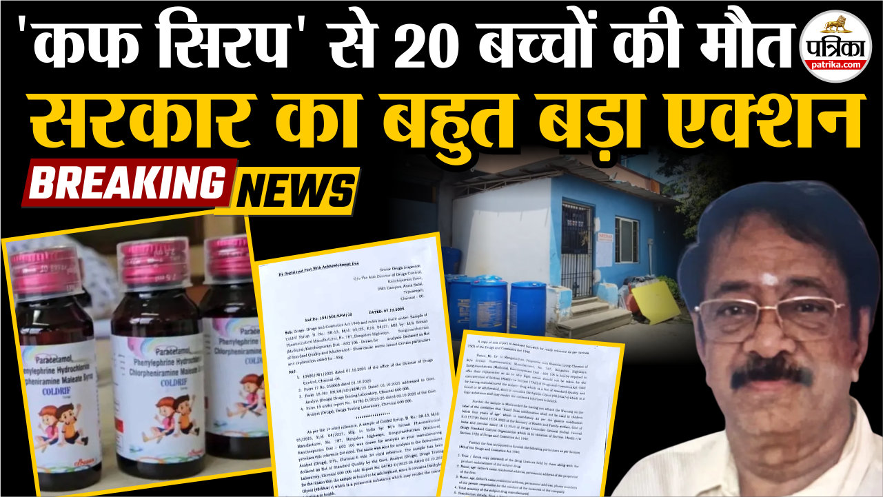 मध्य प्रदेश में जहरीले कफ सिरप से 20 मासूमों की मौत पर अब तक की सबसे बड़ी कार्रवाई हुई है। कोल्ड्रिफ बनाने वाली कंपनी का मालिक रंगनाथन पुलिस गिरफ्त में है। एमपी पुलिस ने तमिलनाडु से बुधवार देर रात उसे गिरफ्तार किया है। पुलिस हिरासत में लेकर उससे पूछताछ का जा रही है। थोड़ी देर में उसे चेन्नई की जिला कोर्ट में पेश किया जाएगा। बता दें कि पिछले तीन दिन से एमपीके छिंदवाड़ा जिले की पुलिस तमिलनाडु में रंगनाथन को पकड़ने के लिए छापामारी की कार्रवाई कर रही थी। तीन दिन बाद लेकिन एमपी पुलिस को कामयाबी मिली और वह पुलिस गिरफ्त में आ गया। बताया जा रहा है कि पुलिस ने उसे चेन्नई से गिरफ्तार किया है।