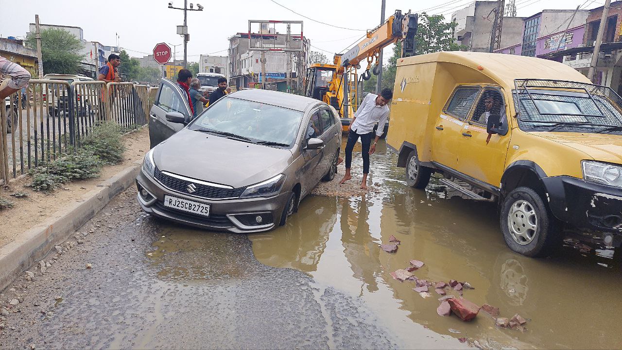 मैग्जीन क्षेत्र पर जलभराव से हाइवे पर हुए गड्डों में अनेक वाहन पलट चुके हैं। आए दिन पानी भरे गड्ढों के कारण वाहन पलटने की घटनाएं होती रहती हैं। इससे वाहन मालिकों को नुकसान भी उठाना पड़ा, वहीं रास्ता भी अवरुद्ध होता है। मंगलवार को भी एक कार पानी भरे गड्ढे में फंस गई। ऐसे में एक ओर से आवागमन बाधित हो गया। काफी मशक्कत के बाद कार को निकाला जा सका। क्षेत्र के निवासी कैलाश गुप्ता, रमेश जोशी, अभिषेक, तेजङ्क्षसह माली, बाबूलाल माली आदि ने बताया कि जलभराव की समस्या नासूर बन गई है। कई बार प्रशासन के अधिकारियों से गुहार लगा चुके हैं, लेकिन कोई राहत नहीं मिल रही।