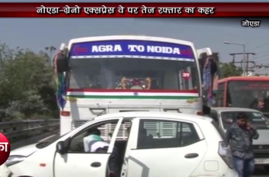 नोएडा।नोएडा-ग्रेटर नोएडा एक्सप्रेस वे पर तेज रफ्तार का कहर देखने को मिला। एक्सप्रेस वे पर 30 मिनट में 3 एक्सीडेंट हुए। जी हां इन एक्सीडेंट्स में 2 लोग घायल हुए, जिन्हें ग्रेटर नोएडा के कैलाश अस्पताल में भर्ती करवाया गया। गनीमत रही कि ज्यादा लोगों को चोटें नहीं आर्इ। लेकिन एक्सीडेंट के बाद जाम लगने से नोएडा से ग्रेटर नोएडा जा रहे सैंकड़ों वाहनों की लंबी कतार लग गर्इ। सूचना मिलने पर पहुंचे पुलिसकर्मियों को इन वाहनों को हटाकर रास्ता खोलने में काफी मशक्कत करनी पड़ी।आपको बता दें, कि एक हादसा सेक्टर-142 के पास एडवेंट टावर के पास हुआ, जहां तेज रफ्तार शिफ्ट कार की टक्कर बस से हो गर्इ। दूसरा एक्सीडेंट सेक्टर-151 के पास हुआ। जहां ब्रेक डाउन हुई हेरिटेज स्कूल बस को ग्रेटर नोएडा की तरफ दूध लेकर जा रहे पिकअप ने टक्कर मार दी।जबकि तीसरा एक्सीडेंट ग्रेटर नोएडा से नोएडा आते हुए दो ट्रकों के आपस में भीड़ जाने से हुआ।