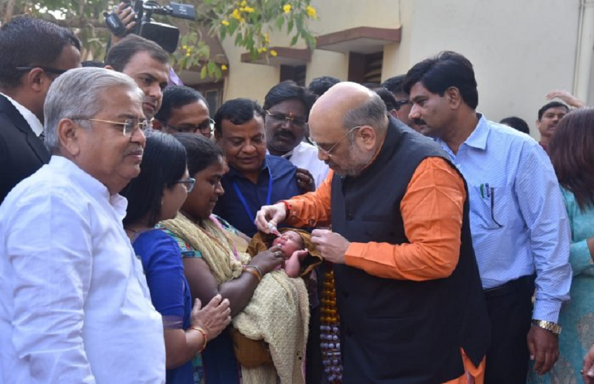 VIDEO: कर्नाटक के हुबली में पहुंचे गृह मंत्री अमित शाह, बच्चे को पिलाई पोलिया ड्रॉप