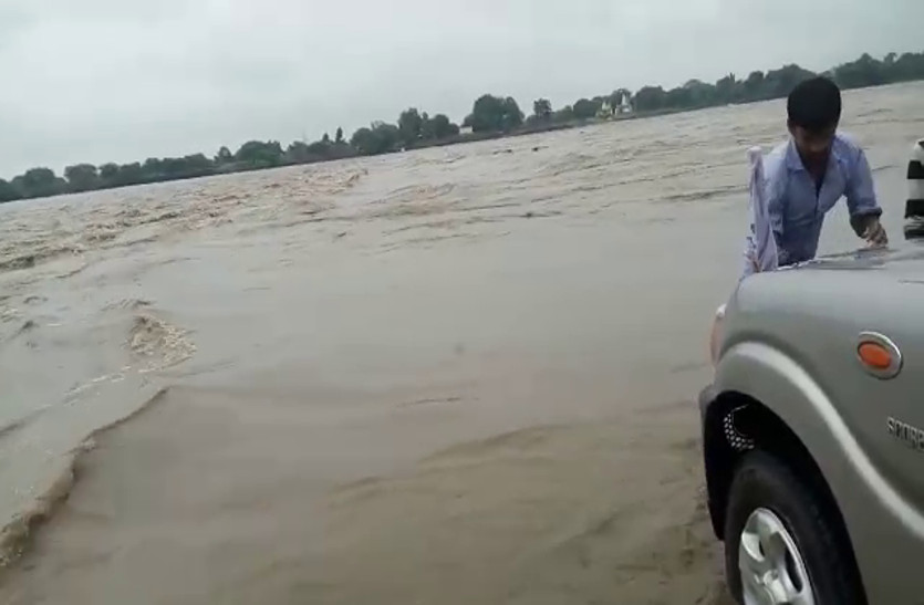 बारिश का कहर : नदी में उफान से पुल के ऊपर तक बह रहा पानी, आवागमन बाधित