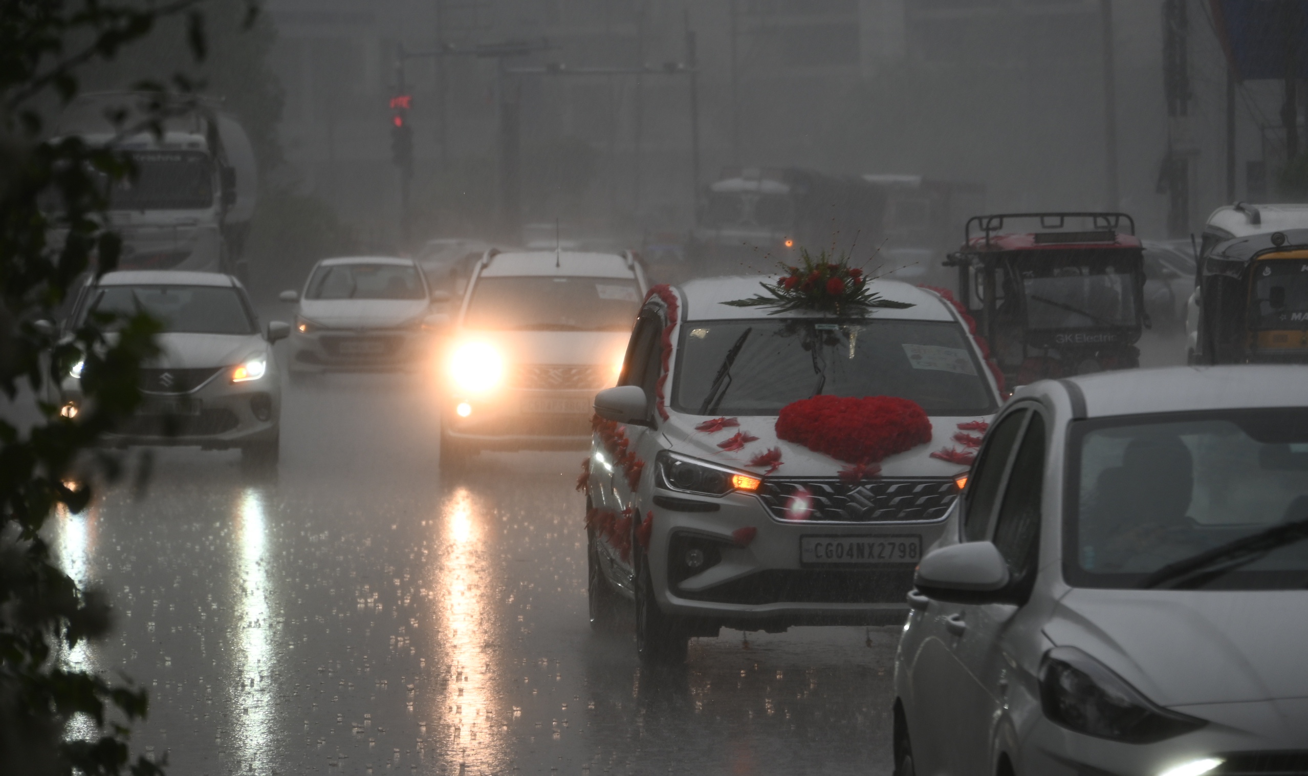 रायपुर@राजधानी में मंगलवार की शाम जोरदार बारिश हुई। दिन में हालांकि तेज धूप आज शहर को झेलना पड़ा है। देर शाम जैसे हुई बादल उमड़ आए और जोरदार बारिश होने लगी। बारिश इतनी तेज थी कि लोग जहां के तहां थमे दिखाई दिए। राजधानी के तेलीबांधा क्षेत्र में तेज बारिश के बीच गुजरते राहगीर नजर आए।