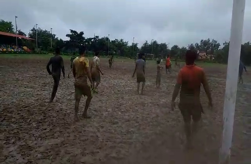 रायपुर. बारिश के वक्त अक्सर लोग कीचड़ या पानी से बचने के लिए घरों में घुस कर बैठ जाते हैं। एेसे में अगर कोई आपको पानी या कीचड़ में खेलता दिखे तो शायद आप उसे पागल कहें। पर यहां छत्तीसगढ़ में खेल के दिवानों की कमी नही है, और अगर बारिश है तो यहां के फुटबॉल के दीवाने मैदान में न उतरे एेसा तो हो ही नही सकता। छत्तीसगढ़ के कई क्षेत्रों में आज सुबह से झमाझम बारिश हो रही है, जिससे यहां के फुटबॉल प्रेमी कीचड़ में खेल का आनंद ले रहे है।