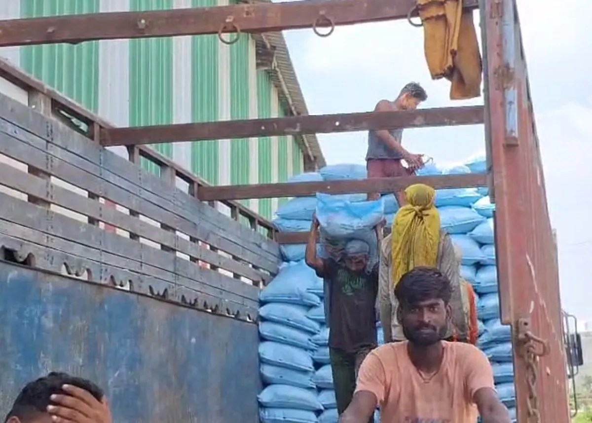 सटई रोड की मंडी में खाद लेने के लिए किसानों की लगी लंबी-लंबी लाइन,