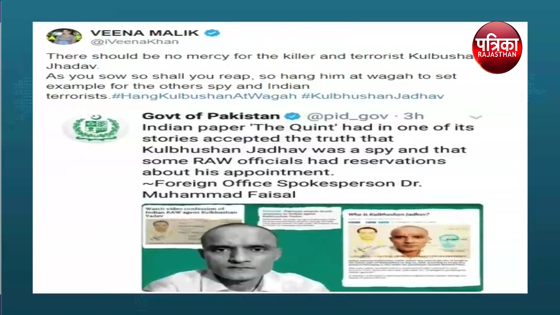 Veena malik :- एक्ट्रेस वीना मलिक(Veena malik ) को ट्रोल(Troll) किया जा रहा है… यूजर्स कह रहे हैं कि आपकी बेवकूफी को सैल्यूट है… वजह है कुलभूषण जाधव(kulbhushan jadhav) क्योंकि एक्ट्रेस ने उन्हें लेकर ट्वीट(Tweet) ही कुछ ऐसा किया है.. वीना मलिक (Veena malik ) ने कुलभूषण जाधव (kulbhushan jadhav) के लिए अपशब्द बोलते हुए विवादित ट्वीट (Tweet) किया… इतना ही नहीं उन्होंने कुलभूषण जाधव को वाघा बोर्डर पर फांसी देने की मांग की हैं। उन्होंने ट्विटर पर लिखा- आतंकवादी और हत्यारे कुलभूषण जाधव पर कोई दया नहीं करनी चाहिए। भारत के जासूसों और आतंकवादियों को उदाहरण देने के लिए उन्हें वाघा बॉर्डर पर कुलभूषण जाधव को फांसी दे देनी चाहिए