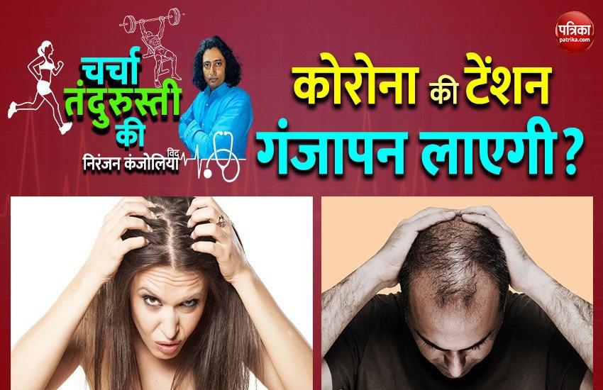 Episode-2 Charcha Tandrusti ki with Niranjan kanjolia: कोविड19 से जुड़े लॉकडाउन और अनिश्चितताओं से जिस तरह स्ट्रेस ( stress and depression) बढ़ रहा है, क्या उसका हमारे बालों पर कोई असर होगा? टेंशन से क्या अपने बाल नोंचने का मन करता है? क्या सिर से ज्यादा बाल झड़ (Hairfall ) रहे हैं? क्या खानपान बिगड़ा है और नींद उड़ी हुई है? तो जान लीजिए कि ये स्टे्रस के संकेत हैं और ज्यादा स्ट्रेस लेना आपकी बालों की सेहत के लिए अच्छा नहीं। डर्मेटोलॉजिस्ट के पास इस तरह के मामले आ भी रहे हैं जहां अत्यधिक स्ट्रेस हेयर फॉल की समस्या देखी गई है। हालांकि स्ट्रेस से उड़े बाल दोबारा ( hair growth) आ भी जाते हैं लेकिन इसमें कुछ महीनों को समय लगता है। कुछ ऐसी दवाएं, सीरम व ट्रीटमेंट हैं जो हेयर फॉल को रोकने व बालों की ग्रोथ का काम करते हैं (treatment for baldness)। आयुर्वेदिक नुस्खों (ayurvedic treatment for hair growth) से भी बाल झडऩे को रोका जा सकता है। यदि बालों की समस्याओं से जुड़े सवाल (how to stop hair fall) आपके मन में हैं तो जवाब जानने के लिए ‘पत्रिका’ के खास शो ‘ चर्चा तंदुरुस्ती की’ विद निरंजन कंजोलिया का यह स्पेशल एपिसोड – क्या कोरोना की टेंशन गंजापन लाएगी?
