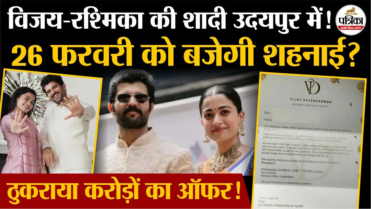 दक्षिण भारतीय (South Superstar)फिल्म इंडस्ट्री की चर्चित जोड़ी रश्मिका मंधाना (Rashmika Mandanna Wedding)और विजय देवरकोंडा (Vijay Deverakonda Wedding)की शादी को लेकर बड़ी खबर सामने आ रही है। मीडिया रिपोर्ट्स के मुताबिक दोनों 26 फरवरी को उदयपुर में डेस्टिनेशन वेडिंग (Udaipur Destination Wedding)कर सकते हैं। शादी को बेहद निजी रखा जाएगा और नो-फोन पॉलिसी (No-Phone Policy)लागू रहने की चर्चा है।बताया जा रहा है कि शादी के बाद 4 मार्च को हैदराबाद में ग्रैंड रिसेप्शन(Reception in Hyderabada) भी हो सकता है। इतना ही नहीं, एक बड़े OTT प्लेटफॉर्म का ऑफर भी कपल ने ठुकरा दिया है। क्या सच में उदयपुर में बजेगी शहनाई? जानिए पूरी खबर इस वीडियो में।