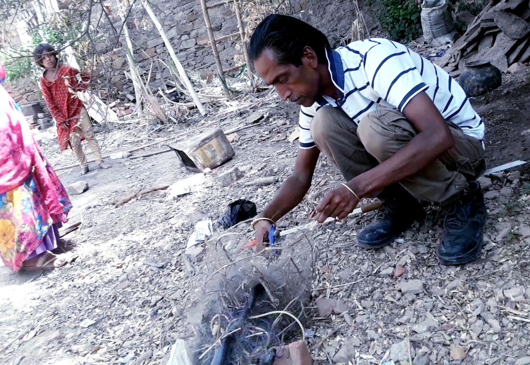Snake trapped in fish trap udaipur