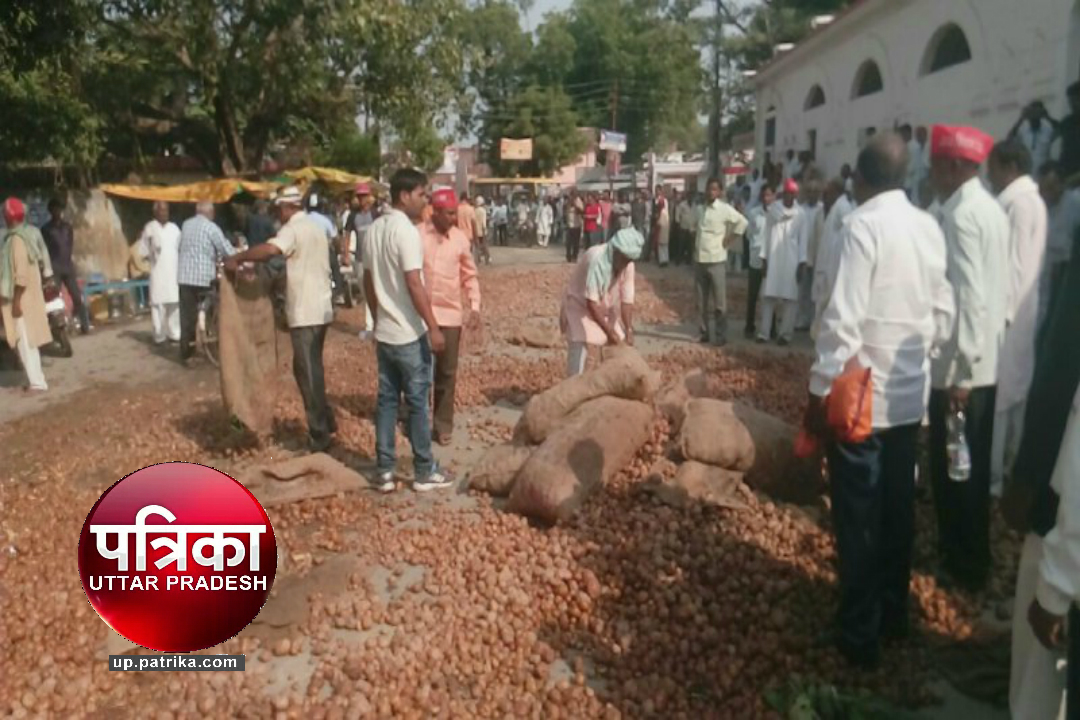 गाजीपुर. यूपी के गाजीपुर में आलू के किसान योगी सरकार से नाराज हैं। किसानों ने अपनी नराजगी कुछ इस तरह जाहिर किया कि सभी लोग हैरान हो गए। किसानों ने गाजीपुर जिला मुख्यालय पहुंचकर वहां सड़क पर सैकड़ों क्विंटल आलू फेंक दिया। लोग उसी आलू पर से गाड़ियां लेकर आते-जाते रहे। यही नहीं किसानों ने छुट्टा पशुओं की समस्या से तंग आकर अपने साथ ट्रकों में भरकर लाए पशुओं को मुख्यालय पर ही हांक दिया। बाद में जब एसडीएम सदर ने उन्हें रोकने की कोशिश की तो वो लोग उनसे भी उलझ गए। ये सारा प्रदर्शन किसान महासभा की अगुवाई में किया गया। किसानों ने जमकर योगी सरकार के खिलाफ नारेबाजी भी की।