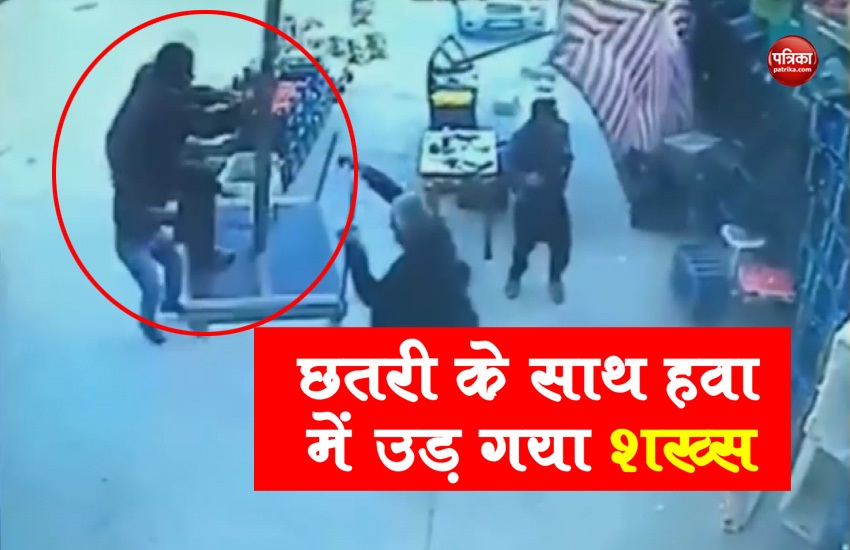 VIDEO में देखें कैसे छतरी के साथ हवा में उड़ गया शख्स