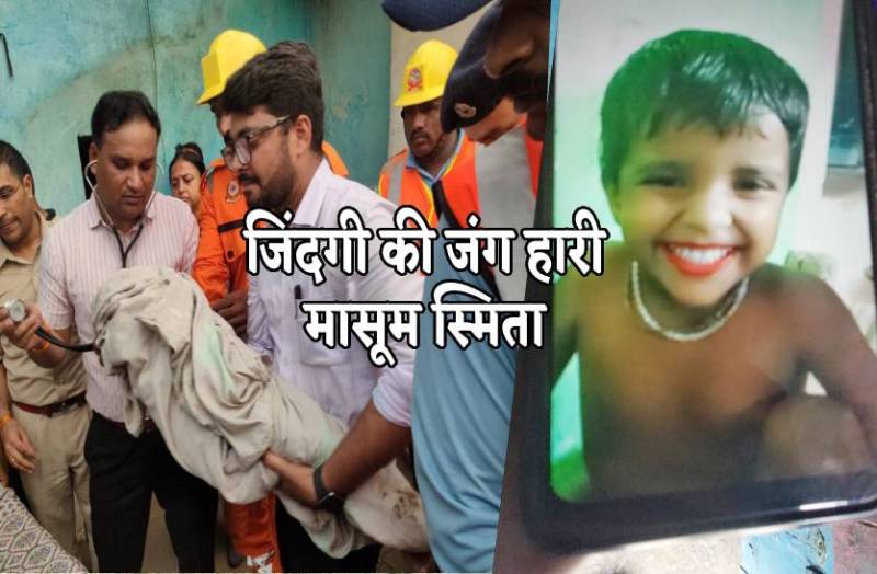 विदिशा जिले के पथरिया थाना क्षेत्र के गांव कजरी बरखेड़ा में मंगलवार को ढाई साल की बच्ची स्मिता अहिरवार पिता इंदर सिंह अहिरवार (पप्पू) घर के आंगन में खेलते वक्त खुले पड़े बोरवेल के गड्ढे में गिर गई थी। जिसकी सूचना परिजन ने प्रशासन को दी थी और प्रशासन तुरंत मौके पर पहुंच कर बच्ची स्मिता के रेस्क्यू में जुट गया था। ऑक्सीजन सिलेंडर के द्वारा स्मिता को ऑक्सीजन सप्लाई की जा रही थी। कैमरे से देखने पर स्मिता करीब 15 फीट की गहराई में फंसे होने की जानकारी मिली थी। जिसके बाद पास ही जेसीबी की मदद से गड्ढा खोदा गया और फिर सुरंग बनाकर स्मिता तक रेस्क्यू की टीम पहुंची। करीब 6 घंटे तक चले रेस्क्यू ऑपरेशन के बाद रेस्क्यू टीम ने स्मिता को बोरवेल के गड्ढे से बाहर निकाला था । स्मिता को बोरवेल से बाहर निकालने के बाद तुरंत अस्पताल ले जाया गया था । लेकिन उसकी जान नहीं बचाई जा सकी । हमेशा मुस्कुराती रहने वाली स्मिता हमेशा के लिए खामोश हो चुकी है। स्मिता की मौत से उसके परिवार ही नहीं बल्कि पूरे गांव में मातम पसरा हुआ है।