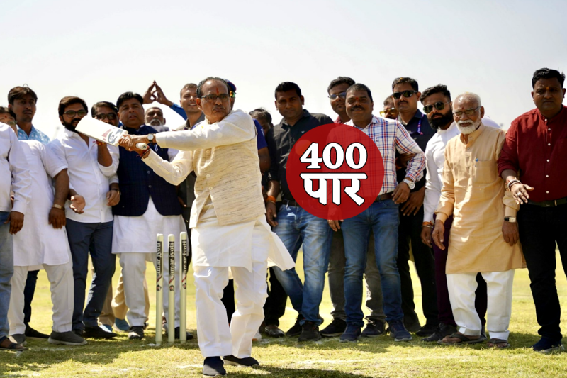 इसके बाद पूर्व सीएम शिवराज सिंह चौहान बल्ला हाथ में लेकर क्रिकेट जोहर दिखाने पिच पर उतर गए। यहां क्रीज पर बल्ला थामें शिवराज ने पहली ही गेंद पर बॉल को बाउंड्री लाइन के पार पहुंचा दिया। इस दौरान उनके समर्थकों का उत्साह भी देखने योग्य था। इसी शॉट को लगाते हुए शिवराज सिंह ने एक तस्वीर अपने सोशल मीडिया हैंडल एक्स पर शेयर की। इसके साथ उन्होंने केप्शन में लिखा- 'अबकी बार 400 पार'।