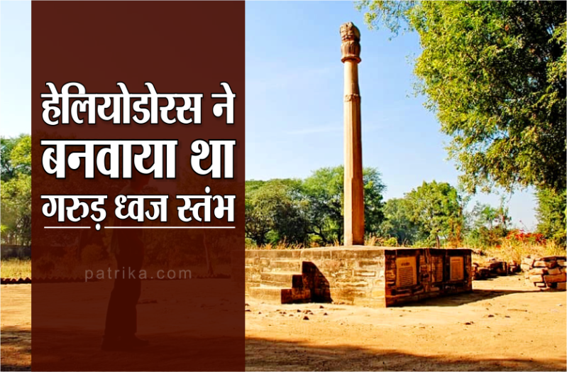 9वें शुंग शासक महाराज भागभद्र के दरबार में तक्षशिला के यवन राजा अंतलिखित की तरफ से हेलिओडोरस को राजदूत बनाया था। इसने वैदिक धर्म की व्यापकता से प्रभावित होकर भागवत धर्म स्वीकार कर लिया था। उसी ने भक्तिभाव से एक विष्णुमंदिर का निर्माण करवाया और उसके सामने गरुड़ध्वज स्तंभ बनवाया। स्तम्भ पर पाली भाषा में ब्राह्मी लिपि का प्रयोग करते हुए एक अभिलेख मिलता है।इसके अभिलेख में जो लिखा है वो इस प्रकार है। देव देवस वासुदेवस गरुड़ध्वजे अयंकारिते इष्य हेलियो दरेण भागवर्तन दियस पुत्रेण नखसिला केनयोन दूतेन आगतेन महाराज सअंतलिकितस उपता सकारु रजोकासी पु (त्र)(भा) ग (भ) द्रस त्रातारसवसेन (चतु) दसेन राजेन वधमानस।