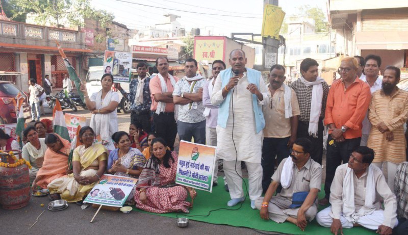 विदिशा। रसोई गैस की कीमतों में वृद्धि और महंगाई के खिलाफ महिला कांग्रेस ने माधवगंज चौराहे पर विरोध प्रदर्शन किया। इस दौरान महिला कांग्रेस अध्यक्ष प्रियंका किरार ने कहा कि सरकार ने यदि महंगाई पर शीघ्र नियंत्रण नहीं किया तो महिलाएं इसके विरोध में सड़कों पर उतरने को मजबूर हो जाएंगी। इस दौरान धरना स्थल पर रसोई गैस का सिलेंडर रखा हुआ था और महिलाएं हाथ में कटोरे लेकर बढ़ती महंगाई और इसके नियंत्रण में असफल हो रही सरकार के विरोध में जमकर नारेबाजी करती रहीं। कांग्रेस जिलाध्यक्ष किरार ने कहा कि कांग्रेस सरकार में रसोई गैस के दाम 400 से 425 रुपए तक रहे जो अब 1 हजार से अधिक हो चुके हैं। हर वस्तुओं में कीमतें बढ़ रही इससे महिलाओं की रसाेई का बजट बिगड़ चुका है और इससे महिलाओं में खासी नाराजी है। उन्होंने कहा कि मोदी सरकार ने अच्छे दिन की बात कहकर महिलाओं से छल किया जिसे महिलाएं बर्दाश्त नहीं करेगी। महंगाई के खिलाफ इस विरोध प्रदर्शन को विधायक शशांक भार्गव ने भी संबोधित किया। उन्होंने कहा कि सोती सरकार को जगाने के लिए महिला कांग्रेस ने यह आंदोलन किया। उन्होंने कहा कि िस्थति ठीक नहीं है महंगाई एवं बेरोजगारी गंभीर समस्या बनती जा रही लेकिन सरकार इस ओर ध्यान नहीं दे रही है। प्रदर्शन में महिला कांग्रेस की प्रदेश सचिव बिल्किस जहां, प्रदेश महासचिव राजकुमारी रैकवार सहित अनीता जैन, पुष्पा बैरागी,रानी साहू, प्रीति कुशवाह, श्वेता जैन, मंजू कुशवाह, कांग्रेस नेता अजय कटारे, रमेश तिवारी, रामराज दांगी, विजयकांत रैकवार आदि भी शामिल रहे।