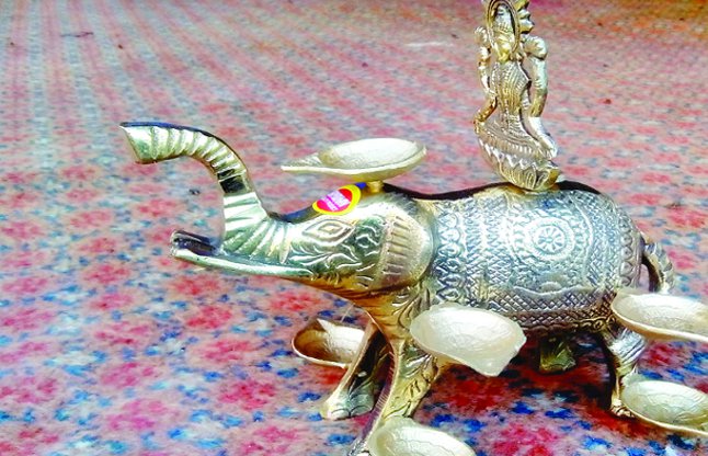दीपकों, महालक्ष्मी की प्रतिमा और पूरे श्रंगार के साथ ये हाथी