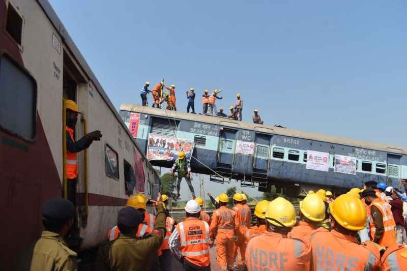 बोगी में फंसे लोगों को निकालकर मेडिकल कैंप में पहुंचाया जा रहा था। बार-बार माइक से ऐलान हो रहा था कि राहत दल को काम करने दें, बीच में न जाएं। उधर सायरन और एंबुलेंस की आवाज माहौल में खौफ पैदा कर रही थी। एनडीआरएफ की टीम जहां बचाव कार्य में जुटी थी, वहीं बोगियों को कटर से काटकर उनमें फंसे लोगों को निकालने का सिलसिला जारी था। सूचना केंद्र ने एडीआरएम को बताया कि हादसे में २१ यात्रियों में से १८ घायल हैं, घायलों में एक वर्ष का एक बच्चा भी शामिल है, जबकि दो यात्री गंभीर हैं और एक की मौत हुई है। सारा माहौल दहशत में डालने वाला था, लेकिन रेलवे और एनडीआरएफ की टीम पूरी मुस्तैदी से बचाव में जुटी थी। यह सब दृश्य ट्रेन हादसे के बाद बचाव कार्य कैसे हों, इसकी रिहर्सल के लिए था।