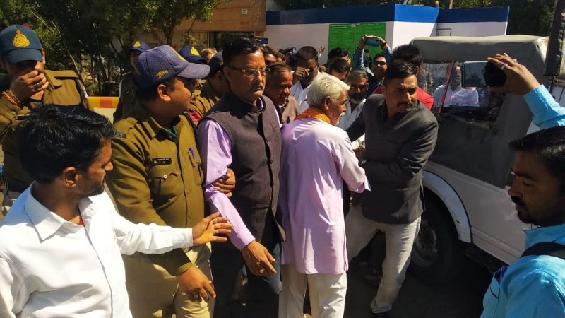 अडानी विल्मर के समक्ष प्रदर्शन करते कांग्रेसजनों को पुलिस ने किया गिरफ्तार