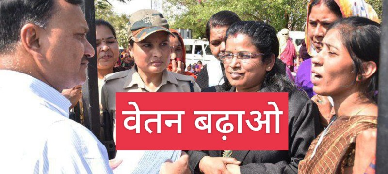 वेतन बढ़वाने बजाई थाली, लगाए नारे, कलेक्ट्रेट में दिया धरना